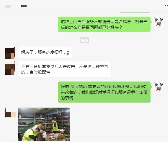 此次現(xiàn)場(chǎng)上門(mén)維修服務(wù)得到了客戶的集體好評(píng),客戶反饋說(shuō):“萊斯特是廠家品牌,售后團(tuán)隊(duì)排除機(jī)器故障響應(yīng)及時(shí)、處理高效,接到我們售后報(bào)修請(qǐng)求,立即派來(lái)維修工程師,為了不因?yàn)榕浼⒄`設(shè)備維修時(shí)間,隨身攜帶了多種可能使用上的配件,通過(guò)專業(yè)判斷很快就維修好了機(jī)器,還順便幫我們檢測(cè)了其他機(jī)器有沒(méi)有問(wèn)題,非常值得信任!”