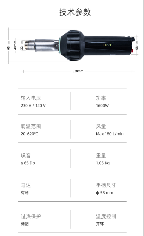 LST1600E是一款便攜、經(jīng)濟(jì)實(shí)用的手動(dòng)工具,電子溫控連續(xù)可調(diào),溫度控制精度高,性能可靠,結(jié)構(gòu)緊湊,使用壽命長(zhǎng)。長(zhǎng)時(shí)間高溫連續(xù)穩(wěn)定可靠運(yùn)行,具有體積小,重量輕,使用方便等特點(diǎn)。換裝不同噴嘴可以滿足不同的焊接需求,除進(jìn)行焊接外,還可對(duì)塑料進(jìn)行熱成型、對(duì)接等作業(yè),配合自動(dòng)焊接機(jī)、擠出式塑料焊槍使用。